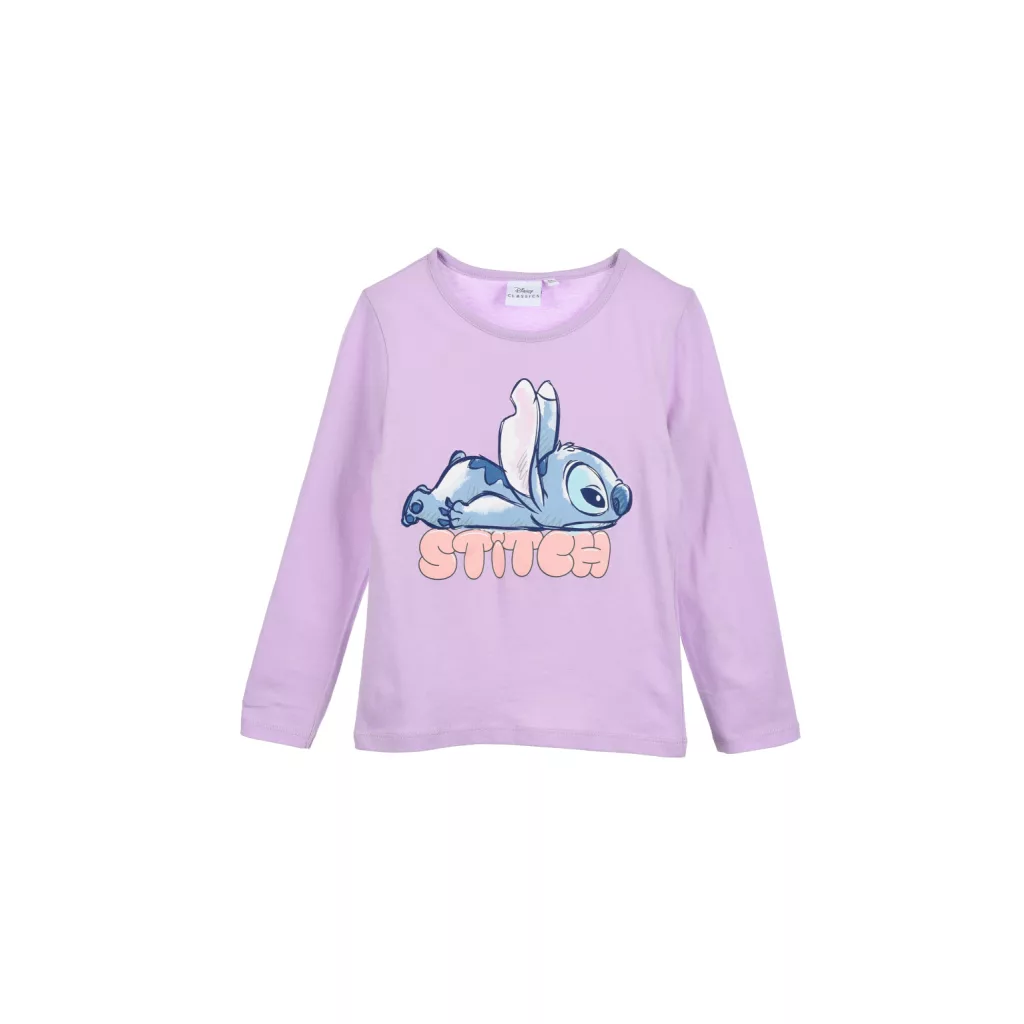 Fais fondre les cœurs avec ce t-shirt manches longues Disney à l’effigie de l’adorable Stitch. Sur un joli fond lilas tout doux, on retrouve Stitch allongé, sourire malicieux, accompagné de l’inscription “Smile” pour une touche fun et positive.